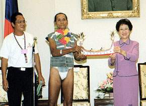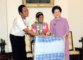 副總統也在茶會中對蘭嶼文教基金會長期以來致力於蘭嶼原住民文的保存工作,表達衷心的感佩之意,並當場致贈十萬元,作為該基金辦理相關活動的贊助經費。