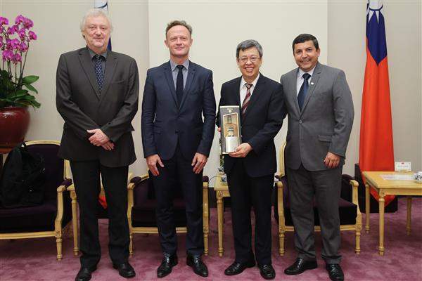 陳建仁副總統今(20)日上午接見「國際學校體育總會」(ISF) 會長勞倫.貝亭卡(Laurent Petrynka)等一行,歡迎訪賓來華參訪,並期盼臺灣能以ISF正式會員的身分來主辦下屆運動會,共同為促進全球青年運動交流而努力。