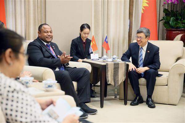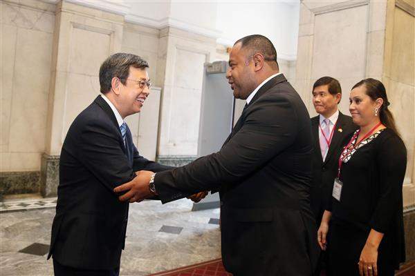 訪賓一行由吉國駐華大使游黛姤(Teekoa Iuta)陪同,前來總統府拜會副總統,外交部次長李澄然亦在座。