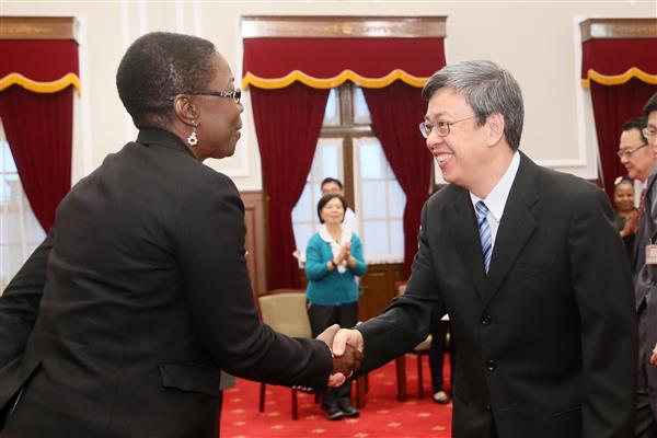 訪賓包括「世界基督教女青年會」會長Deborah Thomas-Austin及秘書長Malayah Harper等一行,由「中華民國基督教女青年會協會」理事長饒瑞瑛陪同,前來總統府拜會副總統,外交部非政府組織國際事務會執行長周麟亦在座。