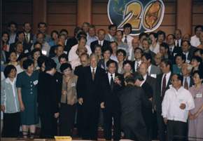 陳總統水扁先生今天上午參加「中華民國史專題第六屆討論會」開幕典禮,並與李前總統登輝先生及與會人員合影留念。