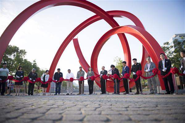 隨後,由藝術家李良仁公子李桐呈贈作品模型予總統;總統也與現場貴賓一同為「中科園區公共藝術作品」舉行揭幕儀式。