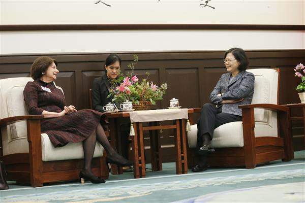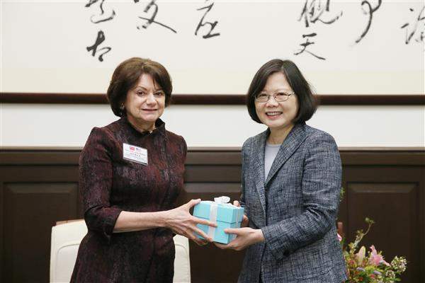 總統致詞時表示,迪卡羅(Rosemary DiCarlo)會長是美國優秀的職業外交官,對歐洲與歐亞地區事務,以及聯合國的運作都非常熟悉,非常歡迎迪卡羅會長首次率團訪臺,也期待藉這次會面能夠聆聽她對目前國際情勢發展的看法。同時,訪團其他貴賓都是臺灣的老朋友,對我國政經發展及兩岸關係現況都有深入的瞭解,也希望跟大家充分交換意見。