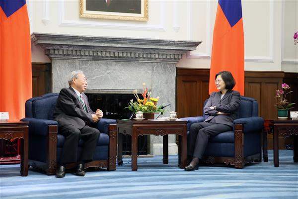 賓客一行由法務部長邱太三陪同,前來總統府晉見總統,總統府副秘書長姚人多也在座。