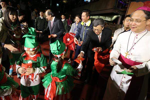 最後,副總統與林智堅市長、天主教會新竹教區主教李克勉及新竹市基督教聯合關懷協會牧師黃成業等人,共同為聖誕樹點燈,並發送糖果給現場幼童,預祝大家聖誕佳節平安、健康、快樂。
