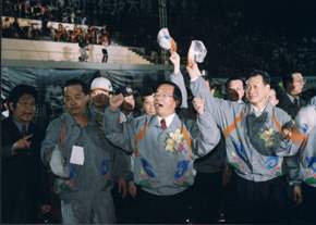 今天是廿一世紀新紀元開始,新政府第一次舉辦的全國運動會,能選擇在高雄縣的鳳山舉行,阿扁覺得很有意義。
