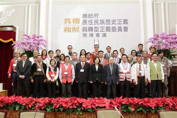 蔡英文總統今(27)日下午出席「總統府原住民族歷史正義與轉型正義委員會預備會議」,以召集人身分致送委員聘書,並說明政府對原住民族議題的重視與過去4個多月所做的努力,重申會以最慎重的態度,推動原住民族的轉型正義工作,也希望原轉會致力達成釐清真相、提出立法或政策建議、促進社會溝通及爭取族群間和解的目標。