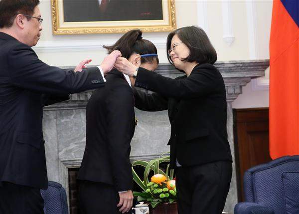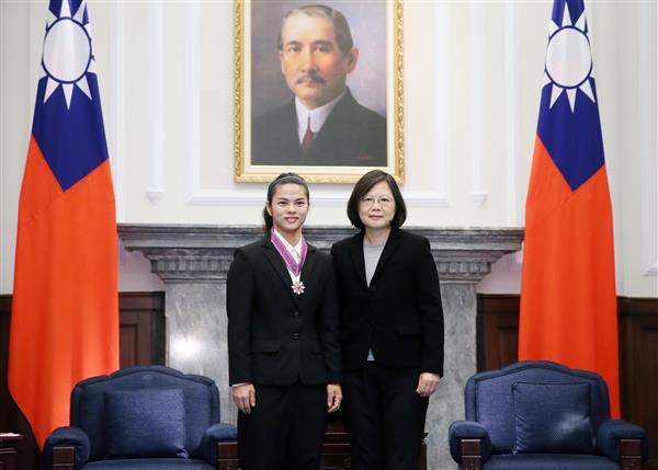 蔡英文總統今(29)日上午頒授「四等景星勳章」予舉重國手許淑淨,表彰其在競技體育上的優異表現。