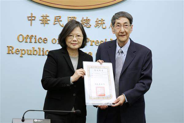 隨後,總統親頒委員聘書,由東吳大學政治學系教授黃默代表接受。