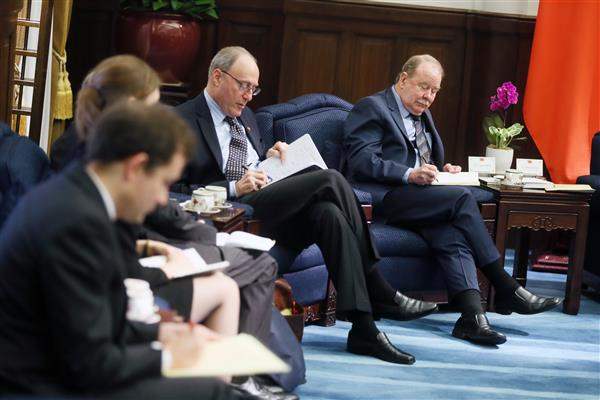 訪賓一行包括哈佛大學費正清中心臺灣研究小組召集人戈迪温博士(Steven Goldstein)、波士頓大學國際關係暨政治系教授傅士卓 (Joseph Fewsmith)、波士頓學院政治系教授陸伯彬 (Robert Ross)、史汀生中心東亞計畫主任容安瀾 (Alan Romberg)、德國Göttingen大學訪問教授康琳娜(Alanna Krolikowski),以及中研院政治學研究所助理研究員古大牛(Daniel Koss),由外交部次長李澄然陪同,前來總統府晉見總統,國家安全會議秘書長吳釗燮也在座。