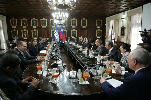 蔡總統認為,臺灣跟宏都拉斯雖然在地理上相隔遙遠,但是兩國長久以來的邦誼,拉近了彼此距離。儘管國際局勢變動不斷,雙方各自面臨的挑戰也從未間斷,但是兩國相互扶持的心,是相同不變的。