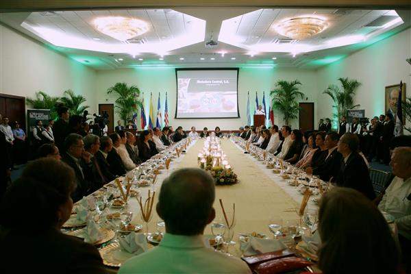 總統抵達後,拉菲謝集團(Lafise)總裁薩莫拉對總統及訪團的到來表達誠摯歡迎之意,並簡單向大家說明自己所經營的金融、銀行、牛肉等產業,誠摯期盼透過企業交流提升雙邊關係與友誼,並強調該集團亦致力於投入教育相關領域。