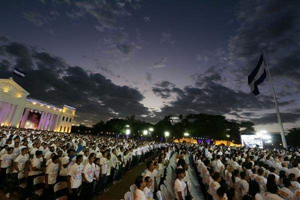 在榮譽樞機主教Miguel Obando祝禱後,奧德嘉總統發表就職演說,說明他的施政理念及國家發展願景。演說中,奧德嘉總統以姐妹(hermana)稱蔡總統,說她也在現場陪伴大家。此時,蔡總統站起來向大家致意,獲得現場民眾的熱烈掌聲。