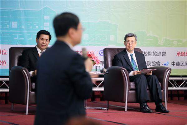 隨後,副總統也與在場的大專校院協進會代表座談,針對代表們所關心的國內技職教育發展與經費補助比例,以及提高私校教職員的退休所得替代率等問題,副總統表示,總統很重視技職教育,希望善加發展技職學校的特色,讓年輕人找到自己的興趣志向,同時,政府也會持續關注教育經費適當分配,讓所有學生得到應有的照顧,提升受教品質。另,年金改革方面,可能影響到一些退休教授的所得,然因有時代變遷不得不的迫切性,未來政府一定會以循序漸進的方式實施,朝「領得久、領得到」的方向來做制度改變。