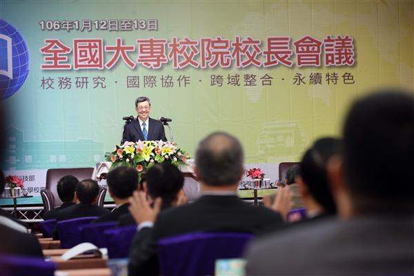 陳建仁副總統今(13)日下午前往高雄市出席106年度全國大專校院校長會議,說明目前臺灣高等教育的施政重點,並希望透過此次大學校長會議,集思廣益,解決當前教育體制的問題,讓教育真正發揮人才培育功能。