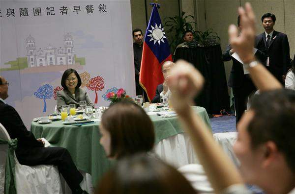 蔡英文總統於薩爾瓦多時間1月13日(週五)上午7時30分(臺北時間13日晚間9時30分)於下榻旅館與隨團記者早餐敘,說明此行的成果,以及未來我國外交政策及作法,也回應隨團記者有關兩岸關係與外交議題等提問。