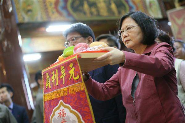 今(28)日是農曆大年初一,蔡英文總統先後前往屏東「車城福安宮」、嘉義「朴子配天宮」、臺南「安平開臺天后宮」、高雄「岡山壽天宮」及「楠梓元帥廟」等地參拜,並發送新春福袋向民眾賀年。