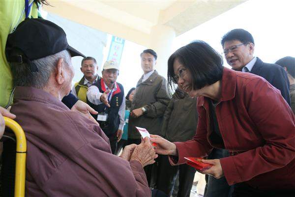 午間,總統也特地到故鄉屏東楓港的「枋山鄉老人活動中心」發送福袋,並向鄉親賀年,鄉親們都非常開心收到這份別具意義的新春祝福。