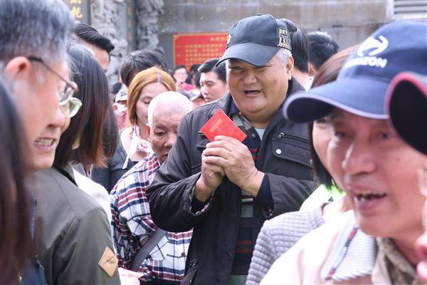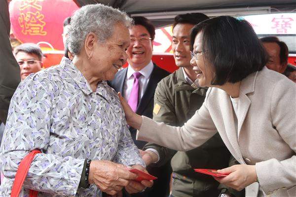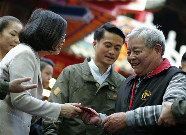 總統在各地廟宇參香時,也發送雞年新春福袋予現場民眾,祝福大家在新的一年,都能大吉大利,歡喜過好年。排隊領取福袋的民眾相當踴躍,有的扶老攜幼,有的精心打扮,都是為了在新春期間從總統手中討個吉祥,現場氣氛熱鬧歡愉。