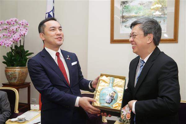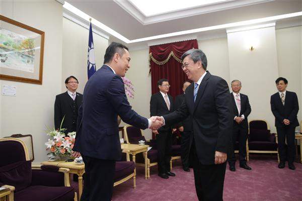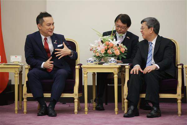 訪賓一行由「日本臺灣交流協會臺北事務所」代表沼田幹夫陪同,前來總統府拜會副總統,外交部次長李澄然及亞東關係協會秘書長蔡明耀均在座。