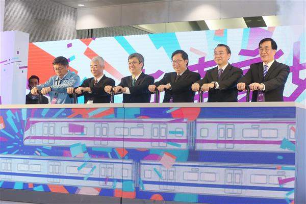 隨後,副總統與交通部長賀陳旦、桃園市長鄭文燦、臺北市長柯文哲、新北市副市長李四川及桃園捷運公司董事長劉坤憶等共同啟動通車儀式,監察院長張博雅及日本建築大師楨文彥陪同出席。