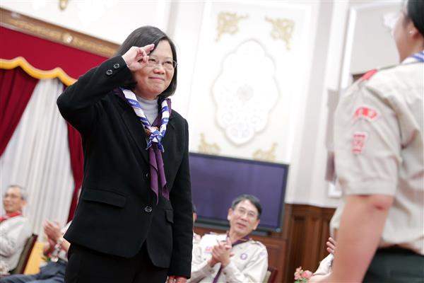 蔡英文總統今(3)日下午接受「中華民國童軍總會」致送會長聘書,並接見該總會各級童軍代表,肯定臺灣童軍教育成果,也期許童軍夥伴未來成為走向國際、迎接新時代的童軍。