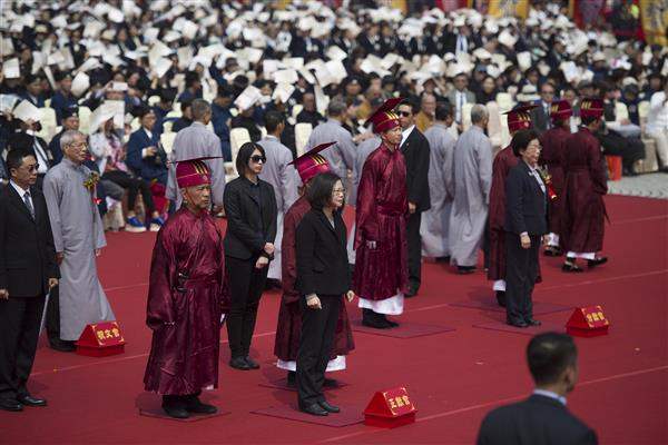 蔡英文總統今(5)日上午出席「中華民國丁酉年一貫道萬民祭天祈福大典」,除肯定一貫道對社會公益的努力與貢獻,也期許民間團體與政府一同努力,讓臺灣社會更圓滿、更祥和。