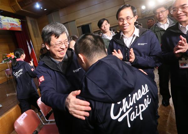 隨後,副總統逐一與參賽選手握手及合影,以實際行動為我代表團加油打氣。