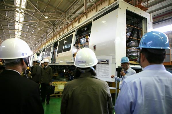 隨後,總統在交通部部長賀陳旦、新竹縣長邱鏡淳及臺車公司董事長蔡煌瑯等陪同下,巡視淡海輕軌、臺中捷運烏日文心北屯線及新北市環狀線電聯車的生產線、測試線與廠房,並親自試乘體驗EMU800電聯車。