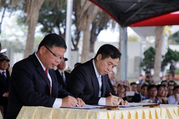 在剛才的儀式中,國防部馮部長、臺船公司鄭董事長以及中科院張院長,已經共同完成潛艦國造的啟動命令,以及合作備忘錄的簽署。