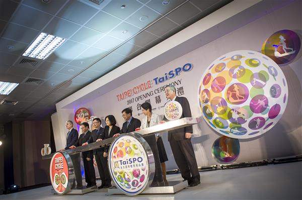 蔡英文總統今(22)日上午出席「2017年『臺北國際自行車展』及『臺北國際體育用品展』」聯合開幕典禮時表示,政府會持續支持自行車與體育用品產業發展,希望業者朝智慧製造、智慧應用方向創新升級,用MIT這塊招牌行銷全世界。