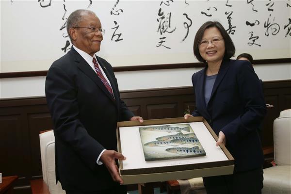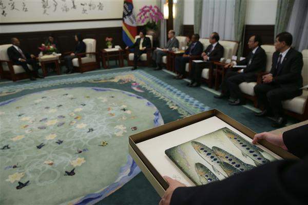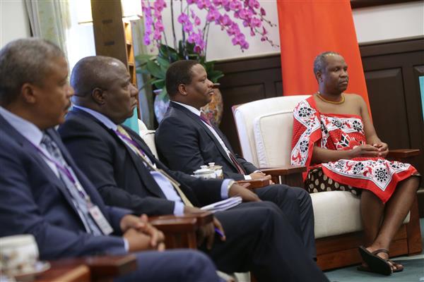 訪賓一行尚包括史瓦濟蘭大使戴敏尼(Thamie Dlamini)等,由外交部部長李大維及我駐史瓦濟蘭大使陳經銓陪同,前來總統府晉見總統,國家安全會議秘書長吳釗燮也在座。