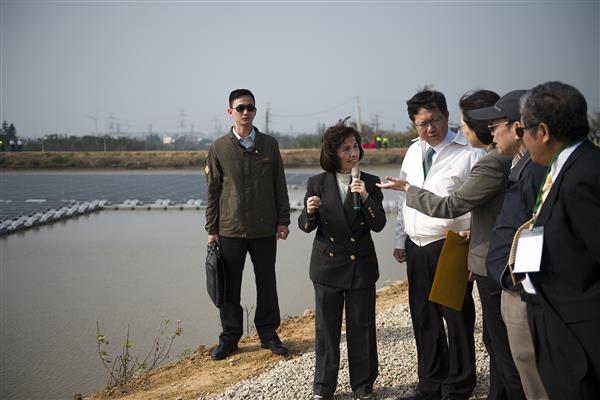 總統說,埤塘不只是桃園的地景特色,還可以成為綠能的基地,讓臺灣的綠能發展再往前走一大步,擺脫對核電的依賴,帶領臺灣走向「非核家園」的理想。至於後續法規上需要解決與協調的部分,張景森政委、吳政忠政委,以及行政院能爰辦公室都會協調,與地方通力合作,一起達成目標。