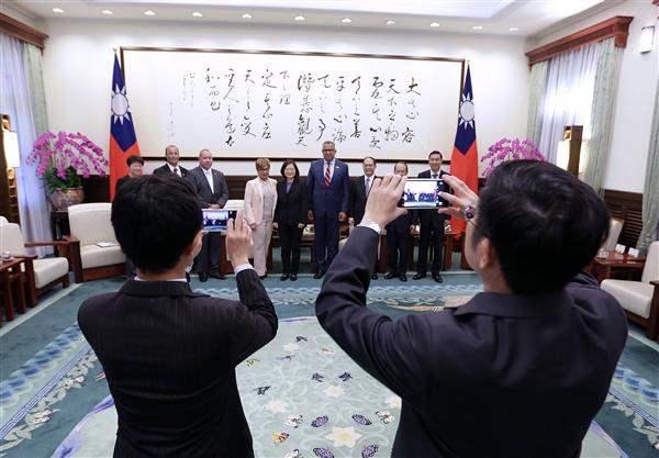 訪賓一行由外交部長林佳龍陪同,前來總統府晉見總統,國家安全會議秘書長吳釗燮也在座。
