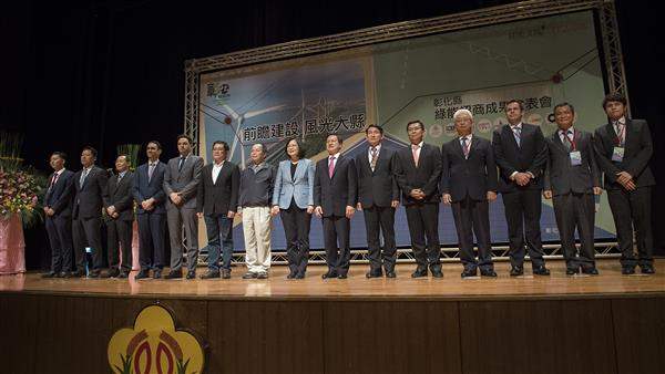 隨後,總統致詞表示,彰化外海有最密集的風場,當地的日照時數也是全臺數一數二,彰化的風及陽光就是彰化的財富。因此,過去兩年多來,彰化縣政府積極引進資金與技術,希望可以徹底發揮彰化的綠能潛力。如今,成果已經顯現,台電及各家綠能開發商預計在彰化投入綠能開發的總金額,已經超過了一兆新臺幣。這一兆元的投資除了會轉化成訂單及就業,也會把彰化的產業推向一個新時代。