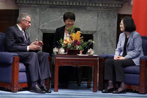 訪賓由外交部次長侯清山陪同,前來總統府拜會總統,國家安全會議秘書長吳釗燮亦在座。