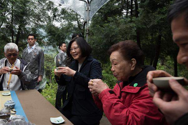 客家人尊稱土地公為「伯公」,總統抵達後首先前往伯公廟參拜,隨後品茗並欣賞音樂表演。「2017客家桐花祭」在今天的活動揭開序幕。