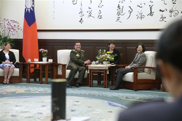 訪賓一行由國防部部長馮世寬、參謀總長邱國正陪同,前來總統府晉見總統,國家安全會議秘書長吳釗燮也在座。
