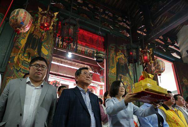 蔡英文總統今(29)日上午前往嘉義龍安宮參拜並主持揭匾儀式。