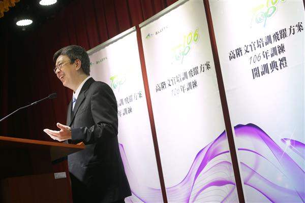 副總統致詞時表示,今天是他首次參加「高階文官培訓飛躍方案」開訓典禮,看到來自中央和地方機關(構)的高階菁英齊聚一堂,提升自我的專業知識與領導知能,感到非常高興與欣慰。