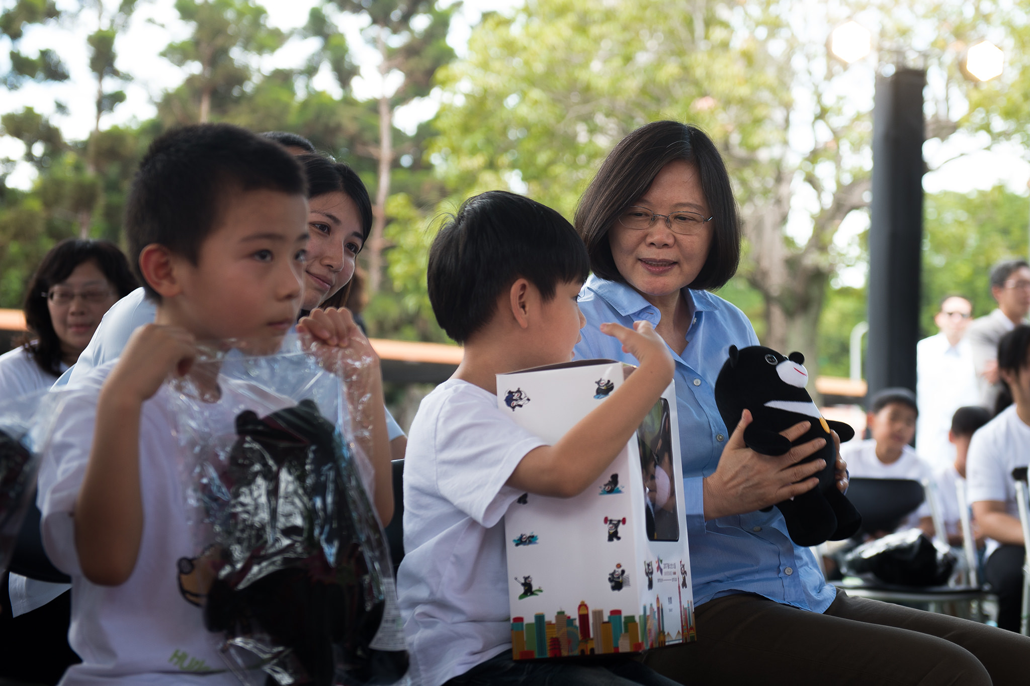 為了帶給小朋友特別的體驗,這次活動邀請曾在全國吉祥物PK戰中有傑出表現的世大運吉祥物熊讚、桃園吉祥物ㄚ桃、園哥,以及高雄吉祥物高通通、高雄熊、花媽與海洋五寶。總統與小朋友們跟著吉祥物一起唱唱跳跳、擊掌擁抱,現場洋溢青春氣息、活力滿滿。