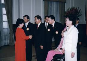 馬拉威國會議長姆帕書MR. SAM MPASU 、馬拉威教育暨科技部長吳達夫MR. ANDREW G. NGA MTAFU、馬拉威國會議員齊文茍MR. LOUIS J. CHIMANGO、馬拉威國會秘書長柯德偉MR. ROOSEVELT L. GONDWE、馬拉威駐華大使卡珍貝MDM. EUNICE KAZEMBE、馬拉威駐華大使夫婿卡珍貝大使夫婿MR. PETER KAZEMBE、聖文森國會議長亞力山大MR. HENDRICK ALEXANDER、吐瓦魯國會議長西歐內MR. TOMU SIONE、吐瓦魯地方政府、婦女暨青年部長艾瑟基亞MR. TEAGAI ESEKIA、吐瓦魯國會議員陶西MR. OTINIELU TAUSI、吐瓦魯國會議員那達士MR. KAMUTA LATASI、吐瓦魯國會議員狄奧MR. SAMUELU TEO、 吐瓦魯國會議員索本嘉MR. SAUFATU SOPOANGA、吐瓦魯議員夫人索本嘉女士MRS. SOPOANGA、吐瓦魯國會秘書鄔尼鄔尼MRS. LAKAAGA UNIUNI、宏都拉斯移民局長歐玖雅MRS. R. M. OCHOA DE GAEKEL、宏都拉斯移民局長夫婿歐玖雅夫婿MR. OTTO GAEKEL、宏都拉斯移民局長秘書歐玖亞小姐MS. ANGEELITA GAEKEL、布吉納法索駐華大使沙瓦多哥MR. JACQUES Y. SAWADOGO、布吉納法索大使夫人依雅納達MRS. RIHANATA SAWADOGO、賴比瑞亞駐華大使康明斯MR. JOHN CUMMINGS 巴拉圭駐華大使瓦第斯MR. CEFERINO VALDEZ P、巴拉圭大使夫人瓦第斯大使夫人MRS. CELESTINA DIAZ DE VALDEZ. F、哥斯大黎加駐華大使阿爾華雷斯MR. OSCAR ALVAREZ、哥斯大黎加大使夫人阿爾華雷斯夫人MRS. ANA LUCIA DE ALVAREZ、薩爾瓦多駐華大使尚塔那MR. RICARDO SANTANA、薩爾瓦多大使夫人徐清濂MRS. CHING-LIEN HSU、巴拿馬駐華大使杜明格MR. JOSE ANTONIO DOMINGUZE、巴拿馬大使夫人高珍妮MRS. I.JEANNETTE GOTI DOMINGUEZ、史瓦濟蘭駐華大使喇米尼MR. MOSES M.DLAMINI、尼加拉瓜駐華大使王海光MR. LUIS A.WONG 聖多美普林西比駐華大使貝格諾MR. OVIDIO U.PEQUENO、聖多美普林西比大使夫人貝格諾大使夫人MRS. LEOPOLDINA PEQUENO 索羅門群島駐華大使辜庫納MR. SETH GUKUNA、多明尼加共和國駐華大使葉南德斯MR. MIGUEL HERNANDEZ、多明尼加共和國大使夫人索賴依達MRS. ZORAIDA R. DE HERNANDEZ、塞內加爾駐華大使薩爾MR. ADAMA SARR、甘比亞駐華大使塞義沙MR. ESSA BOKARR SEY、甘比亞大使夫人塞義沙大使夫人MRS. NENEH TOURAY SEY、帛琉駐華大使陶瑞賓MR. JOHNSON TORIBIONG 海地駐華臨時代辦聖希廉MR. FRANCEL SAINT-HILLIEN、教廷大使館駐華代辦易福霖MR. ADOLFO TITO YLLANA、馬紹爾群島駐華臨時代辦大衛‧保羅MR. DAVID PAUL、貝里斯駐華參事公使貝里斐特MR. CHARLES PEYREFITTE、查德駐華參事代辦孔圖MR. NOUDJIAMLAO YOOSSEM-KONTOU、宏都拉斯駐華參事代辦梅西亞MRS. LUCIA MEJIA、瓜地馬拉代辦拉芭格莉諾MRS. PATRICIA LAVAGNINO、美國在台協會台北辦事處代理處長蘇佩秋MRS. PAMELA SLUTZ、日本交流協會台北事務所理事長後藤利雄MR. TOSHIO GOTO、日本交流協會台北事務所專務理事松倉浩司MR. KOJI MATSUKURA、日本交流協會台北事務所所長山下新太郎MR. SHINTARO YAMASHITA、所長夫人山下澄子MRS. SUMIKO YAMASHITA、新加坡駐台北商務辦事處代表許國豐MR. JOSEPH KOH、新加坡代表夫人許佩芬MRS. PUAY HOON KOH 、阿根廷駐華商務文化辦事處處長花愛德MR. EDGARDO ENRIQUE FLORES、澳大利亞商工辦事處代表郭森若MR. SAM ROBERT GEROVICH、澳大利亞代表夫人郭森若女士MRS. CELIA GEROVICH、奧地利代表羅英MR. INGOMAR LOCHSCHMIDT奧地利代表夫人羅英女士MRS. LOCHSCHMIDT、比利時貿易辦事處處長閔子雍HUGUES MIGNOT、玻利維亞駐華商務暨金融代表處代表莫瑞諾MR. C. ORLANDO MORENOANEZ 、巴西商務中心處長斐瑞拉MR. PAULO A. PEREIRA PINTO 、巴西處長夫人斐瑞拉夫人MRS. MARIA LUCIA BARBOSA PINTO 、英國貿易文化辦事處處長寇大偉MR. DAVID COATES、加拿大駐台北貿易辦事處執行處長黎義恩MR. EDWARD LIPMAN、捷克經濟文化辦事處代表克拉爾MR. MICHAL KRAL、丹麥商務辦事處處長童可善MR. THERKILD THERKILDSEN、丹麥處長夫人童可善夫人MRS. JANE THERKILDSEN、斐濟駐華貿易暨觀光代表處代表馬幕善MR. JOSAIA MAIVUSAROKO、斐濟代表夫人馬萊雅MRS. MARAIA MAIVUSAROKO、法國在台協會主任羅蘭MRS. ELISABETH LAURIN、德國在台協會處長陸柏赫MR. KLAUS RUPPRECHT 、 德國德國文化中心主任夏格梅MDM. SABINE HAGEMANN-UNLUSOY、德國主任夫婿余立松MR. MEHMET UNLUSOY、德國經濟辦事處副處長莫斐MRS. CHRISTINE MALPRICHT、匈牙利貿易辦事處代表麥善德MR. SANDOR MATYUS、匈牙利代表夫人安翠兒MRS. AGNES MATYUS、印度印度-台北協會會長谷南吉MR. RANJIT GUPTA、印度會長夫人谷南吉夫人MRS. SHASHI GUPTA、印尼駐台北印尼經濟貿易代表處會長陳蔽霖MR. ISKANDAR SABIRIN、以色列經濟文化辦事處代表齊普立MR. MENASHE ZIPORI、以色列代表夫人齊托娃MRS. TOVA ZIPORI、義大利經濟貿易文化推廣辦事處代表高樂群MR. ALBERTO GALLUCCIO、義大利代表夫人高樂群女士MRS. GALLUCCIO 、 約旦商務辦事處處長洪穆德MR. BILAL N.HMOUD、約旦處長夫人洪穆德夫人MRS. REEM HMOUD、韓國駐台北韓國代表部代表尹海重MR. HAI JUNG YUN、馬來西亞友誼及貿易中心代表賴欣MR. ABDUL R AHIM BAKRI、馬來西亞代表夫人法莉達 MRS. FARIDAH WASLI、荷蘭貿易暨投資辦事處代表史仕培MR. SIEBE SCHUUR、荷蘭代表夫人史仕培夫人MRS. GEA SCHUUR、挪威貿易委員會主任倪本善MR. PREBEN NILSSON、 挪威主任夫人倪胡娜MRS. ULLA NILSSON、紐西蘭商工辦事處處長范千里MR. CHARLES FINNY、紐西蘭處長夫人胡雯迪MRS. WENDY HINTON、 奈及利亞駐華商務辦事處處長那麥拉格MR. ALFAZAZI A. NAMAIRAGE、阿曼王國阿曼駐華商務辦事處處長蘇利門阿默蓋瑞MR. SULAIMAN SULTAN AL-MUGHAIRY、秘魯駐台北商務辦事處代表康漢鳴MR. JAIME CARDENAS、