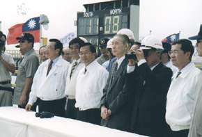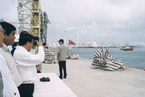 陳總統水扁先生今天上午在總統府主持九一一專案工作簡報之後,隨即前往雲林縣麥寮鄉參訪台塑六輕廠,除聽取相關簡報外,也在王永慶董事長、經濟部林信義部長等人的陪同下參觀廠房設施,並在碼頭接受拖曳消防船以噴水柱、鳴笛的歡迎方式。