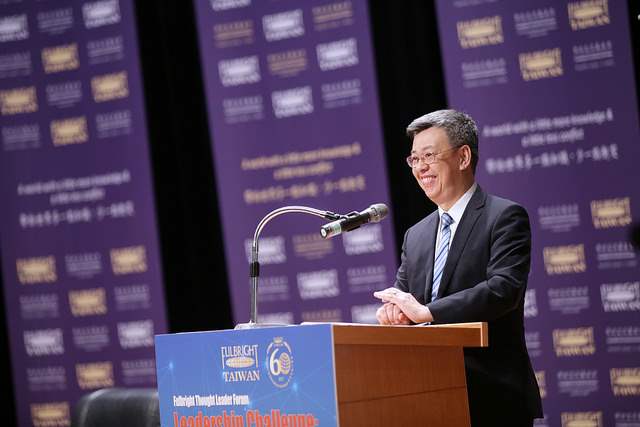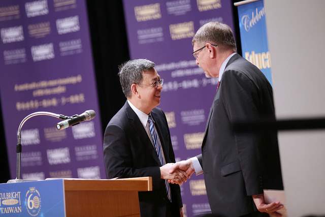 副總統以英語致詞時首先感謝台灣傅爾布萊特學術交流基金會過去60年來致力提升臺美學術交流及情誼,同時也感謝李沃奇(William Vocke)博士及其團隊延續了這項寶貴的傳承。