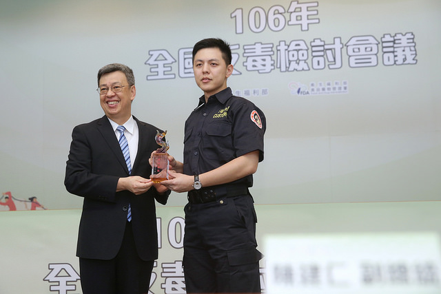 隨後,副總統親頒獎座給106年反毒有功人士團體、105年毒品危害防制中心聯合視導考評績優縣市,以及106年反毒黑客松活動得獎隊伍,表揚他們投入反毒工作的辛勞付出。