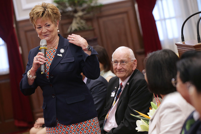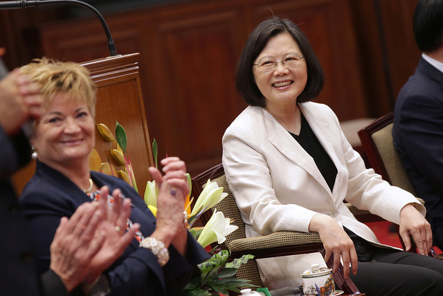總統致詞時表示,非常歡迎易莉森(Jane M. Erickson)總會長繼半年多前來臺參加「國際婦女理事會執行委員會會議」後再次來訪,還記得去(2016)年10月,跟同濟會的夥伴在府內見面,今天也很高興能接待各位。