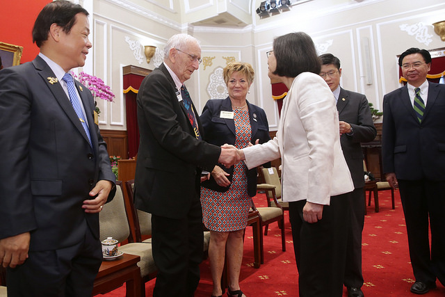 訪賓一行由外交部政務次長吳志中與內政部主任秘書沈淑妃陪同,前來總統府晉見總統,總統府秘書長吳釗燮也在座。