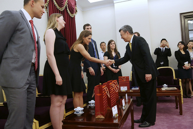 隨後,副總統聆聽學員們分享此行經驗並交換心得,外交部政務次長章文樑及退休大使呂慶龍亦在座。