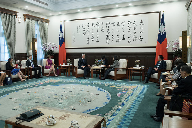 訪賓一行由外交部部長李大維陪同,前來總統府晉見總統,總統府秘書長吳釗燮亦在座。