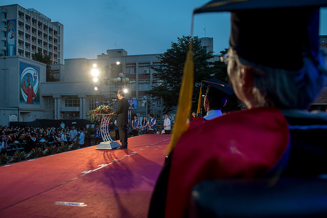 副總統進一步說明,未來的社會將如何,就決定於在座畢業生如何抉擇。倘若大家選擇善良、勤奮、樂觀、進取,未來社會就充滿希望、快樂而安祥;若大家選擇張狂嫉妒、好逸惡勞、自私自利,未來社會就會喧囂、混亂而不安。他希望大家要努力成為追求夢想的人,最重要的是要有「愛」,有愛就能走遍天下,盡力愛別人,就會有人同行,人生的道路就能走得踏實,並能通向真、善、美、聖。副總統強調,在人生旅途中,大家不要害怕失敗,要把失敗當作成功的踏腳石而非絆腳石。